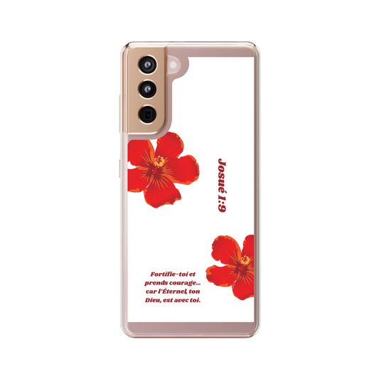 Coque de téléphone fleurie inspirante – Josué 1:9, cadeau pour lui ou elle, coque transparente pour iPhone ou Samsung