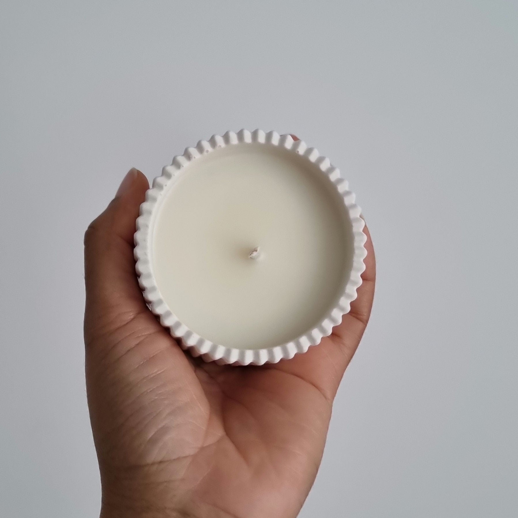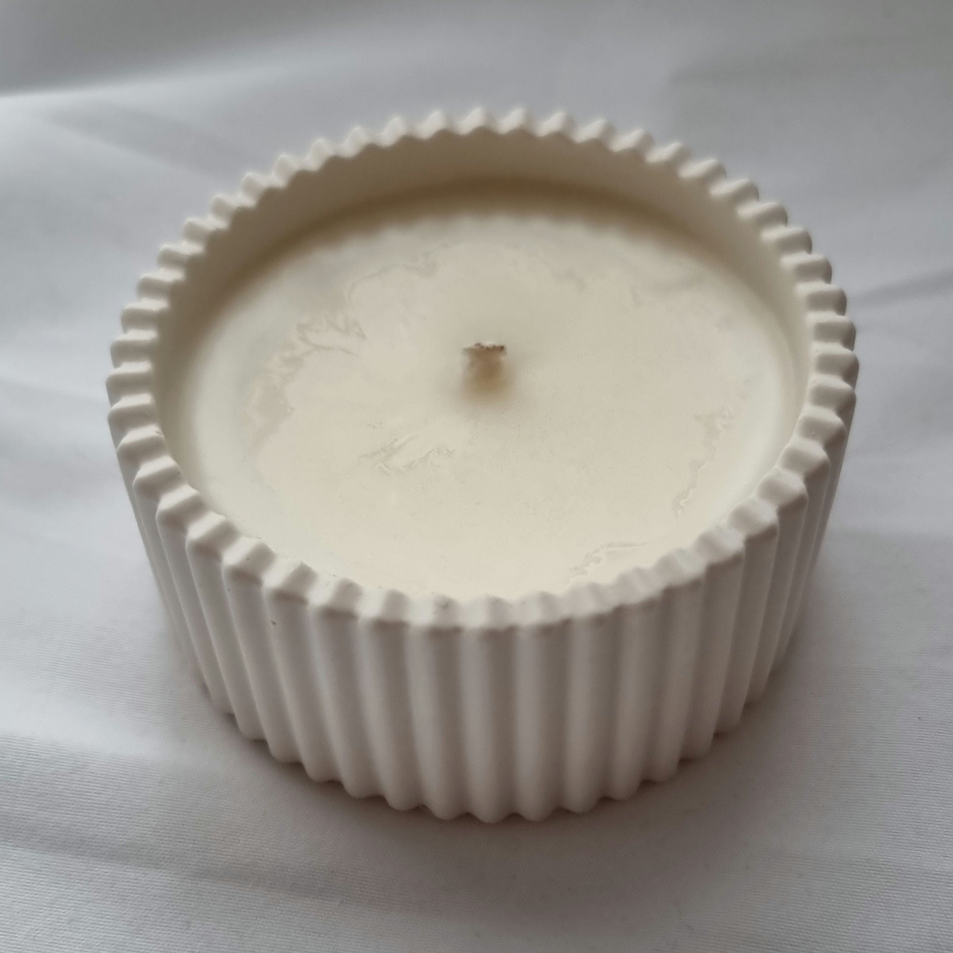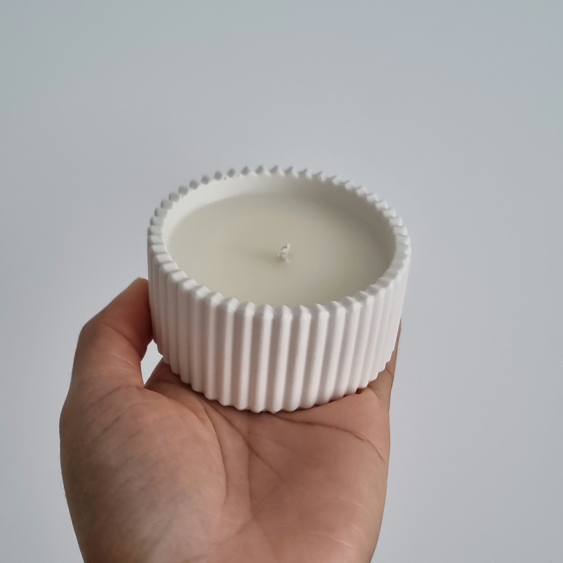 - Pot en Jesmonite Fait Main: Le pot qui abrite notre bougie est également une œuvre d'art artisanale, façonné à la main en Jesmonite pour créer une esthétique unique et moderne.